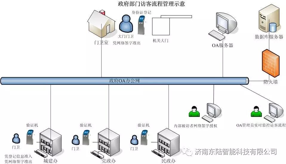 2、訪客管理系統(tǒng)與政府內(nèi)部OA網(wǎng)絡管理系統(tǒng)集成聯(lián)動,方便管理者統(tǒng)一平臺管理